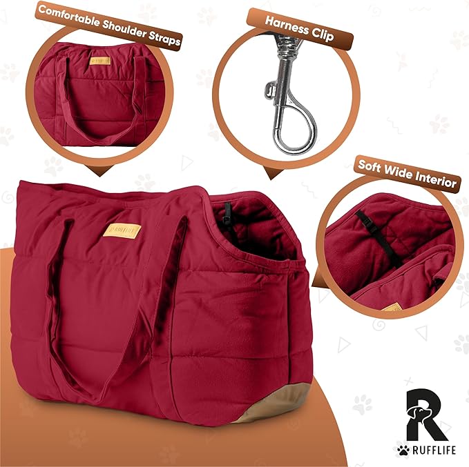 Cozy Plush Pet Carrier Purse - Secure Harness Clip, Lightweight Tote Design for Small Dogs and Puppies (Red)
