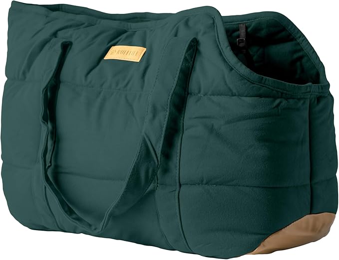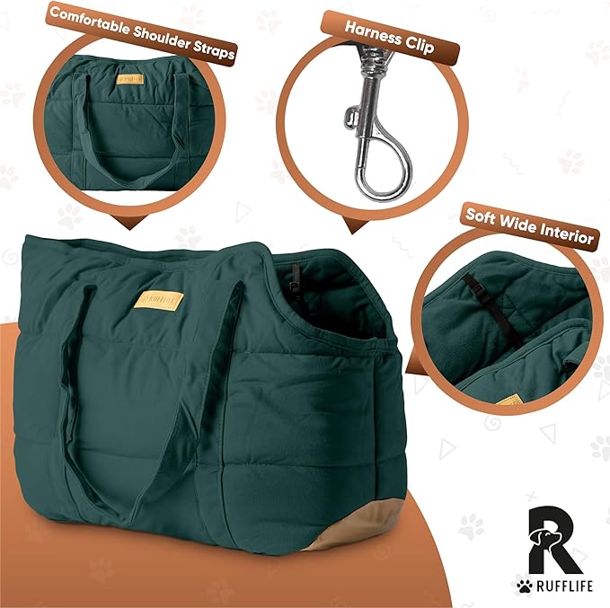 RuffLife Cozy Plush Pet Carrier Purse - Secure Harness Clip, Lightweight Tote Design for Small Dogs and Puppies (Green)
