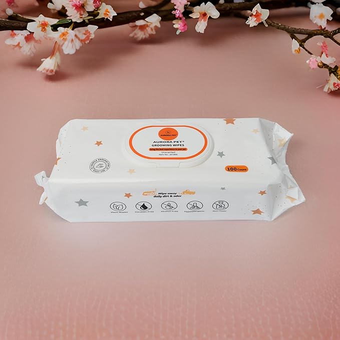 Aurora Pet Wipes – 100% Natural, Plant-Based Hypoallergenic Grooming Wipes for Dogs & Cats – Extra-Durable, Large & Thick for Effortless Cleaning (Unscented, 100 Count)