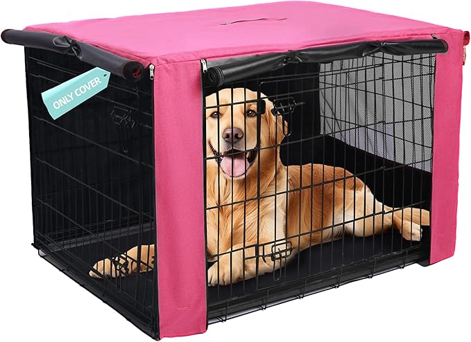 HiCaptain Dog Crate Cover for 48 Inches Wire Crate, Heavy-Duty Breathable Pet Kennel Covers Fit for 1 2 Doors Standard Wire Crate (Pink 48 inches)