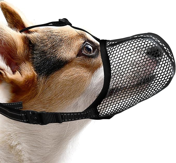 • 【Easy-using and Safer Dog Muzzle】Our soft muzzle for small sized dog is easy to wear. Adjust the strap to fit your dog, ensure it fits perfectly and stay securely on your dog's snout. This also has a loop at the bottom that you can slide the collar through for more security. The reflective nylon straps can be seen even in low visibility conditions or dark night, making it easier to control dogs and ensuring the safety of walking at night.