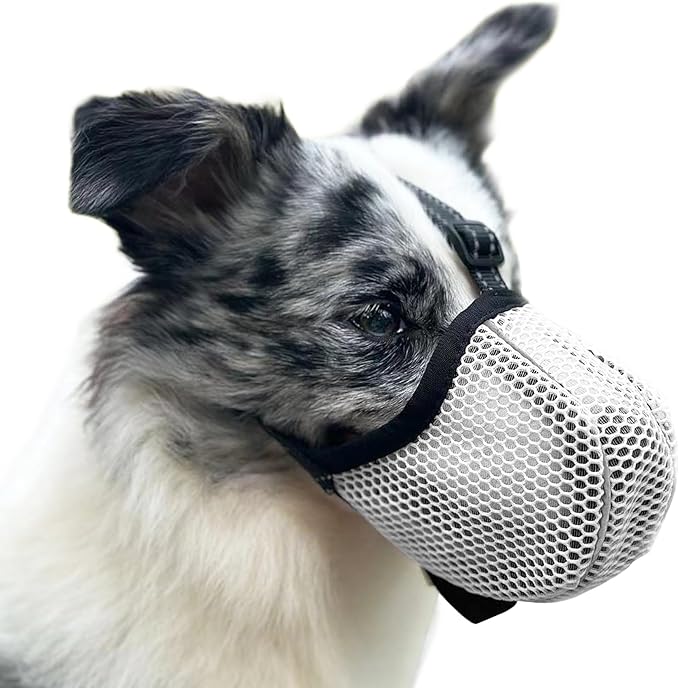 Large Dog Muzzle, Muzzle for Large Dogs to Prevent Eating/Chewing/Biting, Breathable Reflective Adjustable Medium Dog Accessories Dog Muzzle (Grey, L)