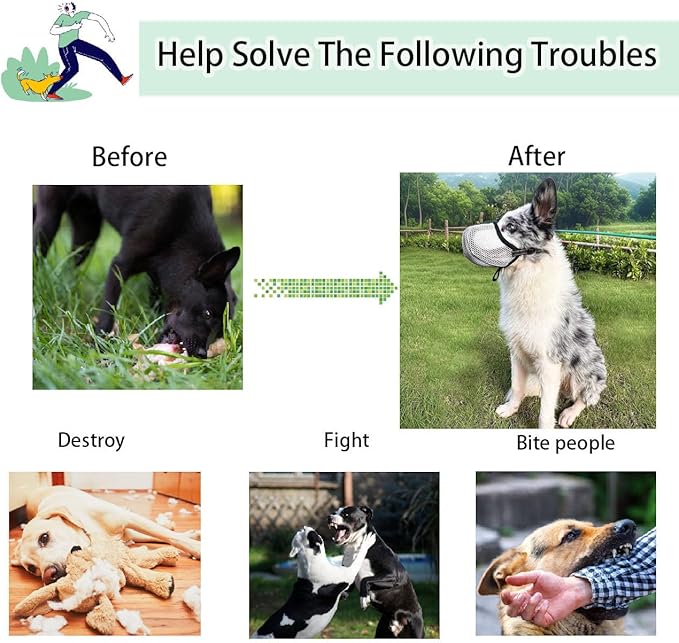 • [Measure and Size] Please measure your dog's nose circumference and nose length before purchase, the size we provide, fit for nose circumference 19-34cm, nose length 4-12cm, but not suitable for dogs with short nose, if you have any questions about the size, please email us, we will reply you within 24 hours.