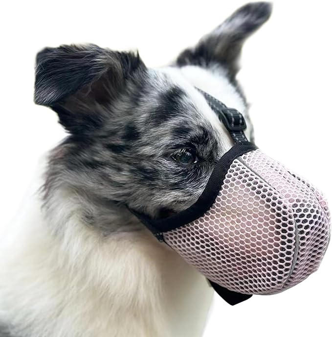 Large Dog Muzzle, Muzzle for Large Dogs to Prevent Eating/Chewing/Biting, Breathable Reflective Adjustable Medium Dog Accessories Dog Muzzle (Pink, XL)