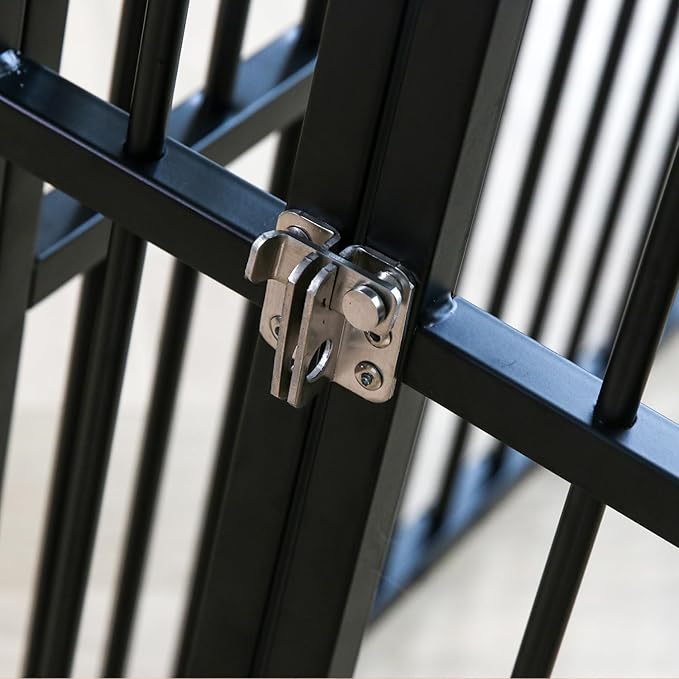 • [Convenient for Pets to Enter and Exit]: The step door of the pet playpen allows for comfortable walking through, Fence doors won't hurt your pet. Upgraded locks are designed to prevent puppies from opening and escaping on their own. For double security even if you have a naughty pet. The panel with the door can be installed upside down so that it also takes care of the small size of the dog-safe access.