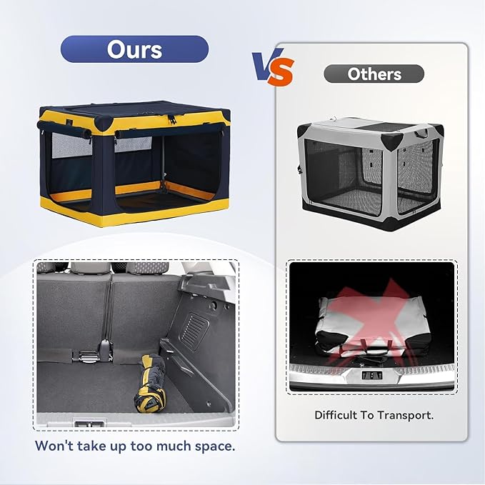 • Enhanced Comfort and Practical Features: The foldable dog crate is equipped with mesh windows on 3 sides for optimal ventilation and visibility, ensuring your pet stays comfortable. A convenient storage pocket is included for keeping pet essentials like treats and toys.