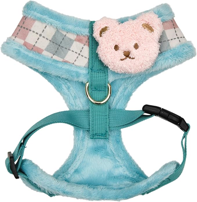 Pinkaholic New York Annika Dog Harness Over-The-Head Warm Winter Argyle Pattern Adjustable Chest for Small Dog, Aqua, Large