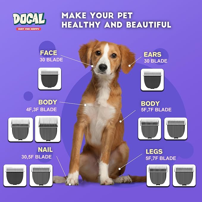 • CUTTING LENGTH🐶: 5F clipper blade is extremely sharp. The heavy and lengthy hairs on the pet's feet, pads, face, ears, and tail are easily removed thanks to cutting length 6mm