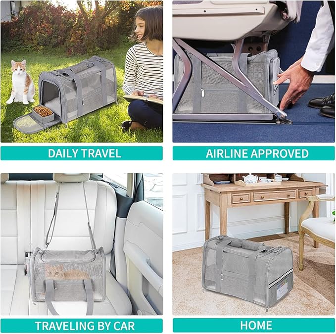 • [Escape-Proof Security]: Featuring a secure, zippered entry that fully closes, our cat carrier keeps your curious kitty safe and secure inside. The mesh ventilation panels allow for ample airflow without compromising on escape-proofing, giving you peace of mind during every trip.
