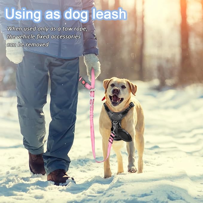 • Exquisite Construction and Reflective Design: Crafted from high-density nylon fabric, our dog seat belt harness for car is designed to withstand chewing and pulling, ensuring your pet's safety during car rides. Our dog seat belt's elastic top rope provides strong elasticity to protect dogs from sudden braking or sharp turns. During night walks with its reflective and elastic rope design