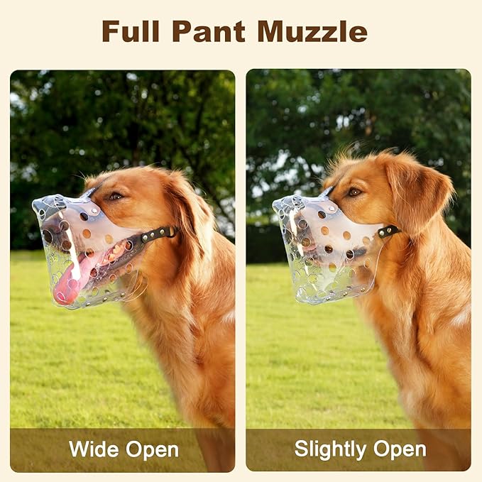 - See Through Dog Muzzle: With a clear PVC design, the muzzle for large sized dog offers an unobstructed view of your dog's expressions, letting you stay aware of their current state.