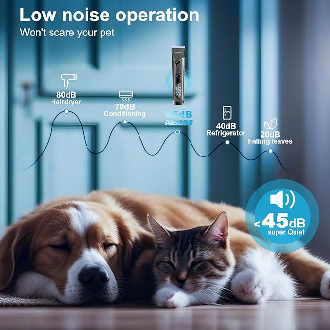 • 【Quiet as a Cat Nap】At 50dB (quieter than a fridge!), its gentle buzz keeps pets chill during trims. No more wrestling matches with Fido!