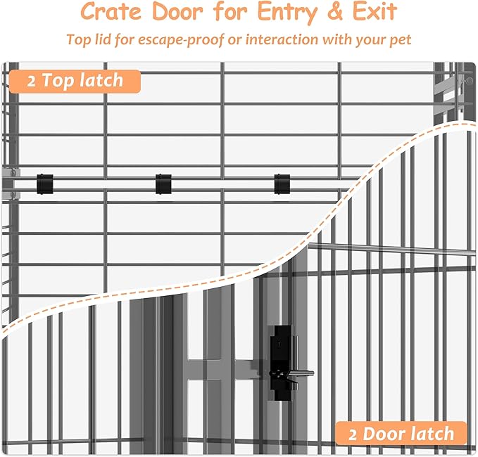 • [Heavy-Duty & Safe] The dog crate is crafted with a heavy-duty frame and featuring 4 secure locks, this dog crate offers a sturdy, rust-resistant metal wire construction with smooth, edge-free surfaces. It’s a safe, stable home for your furry friend.