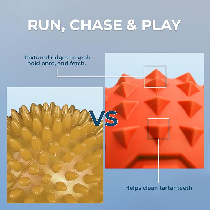 • Textured with Spikes for Dental Health: The spiked surface helps massage gums and clean teeth, promoting better oral hygiene while your dog enjoys their favorite rubber toy
