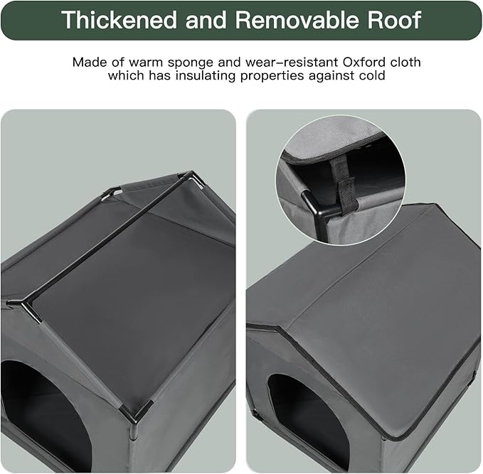 • Thickened Roof: The roof of this pet house is made of warm sponge and wear-resistant Oxford cloth, which has insulating properties against cold.