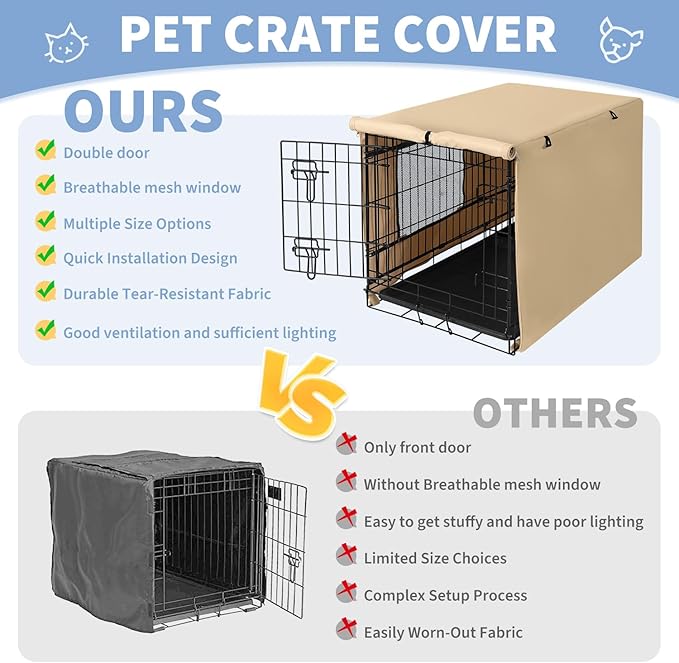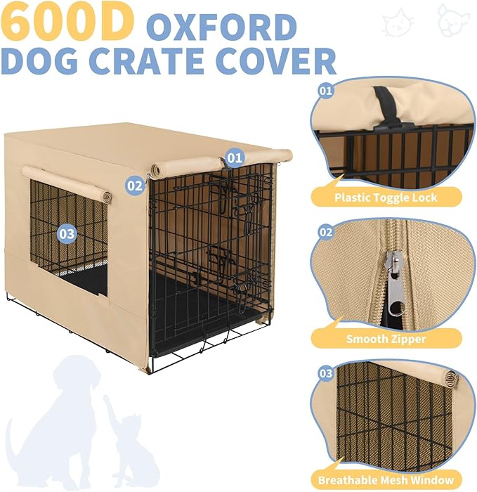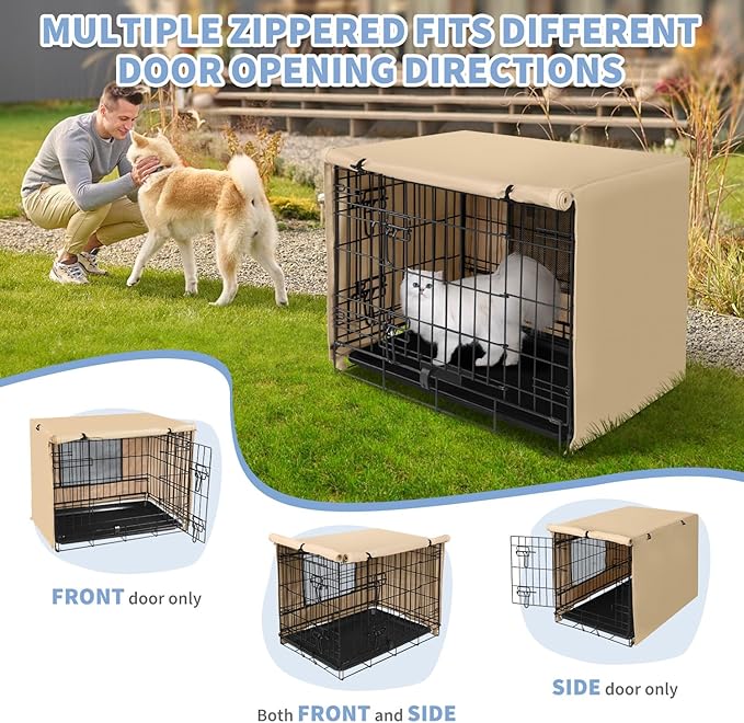 X-ZONE PET 36" Dog Crate Cover for Indoor/Outdoor - Heavy Duty Polyester Pet Kennel Cover Fits for Wire Dog Cage Beige