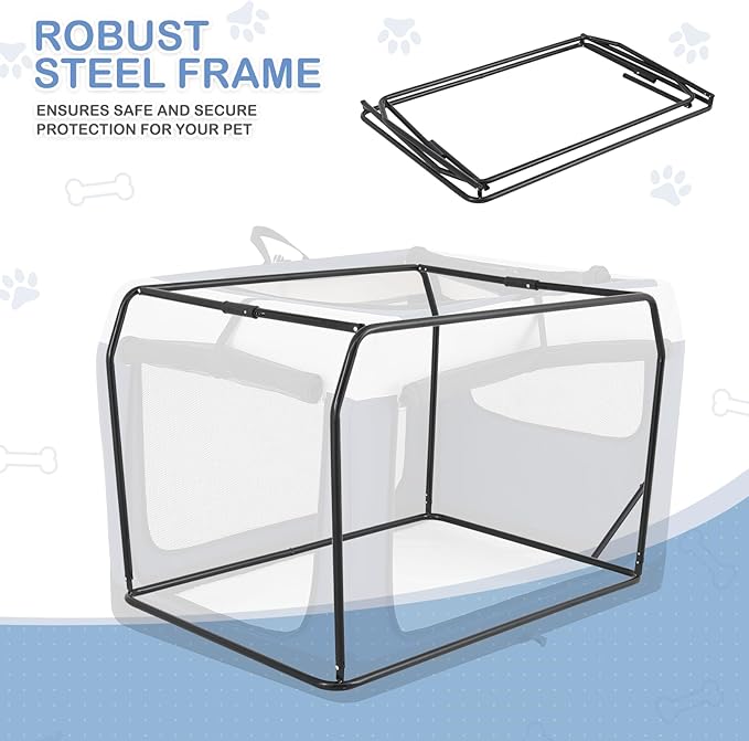 • Enhanced Ventilation & Visibility: With scratch-resistant mesh that offers excellent airflow and a panoramic view, your pet stays cool and comfortable; Rolled up and fastened doors allow for easy access and further ventilation, ensuring a stress-free environment for your pet