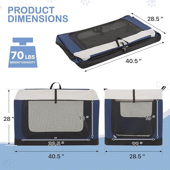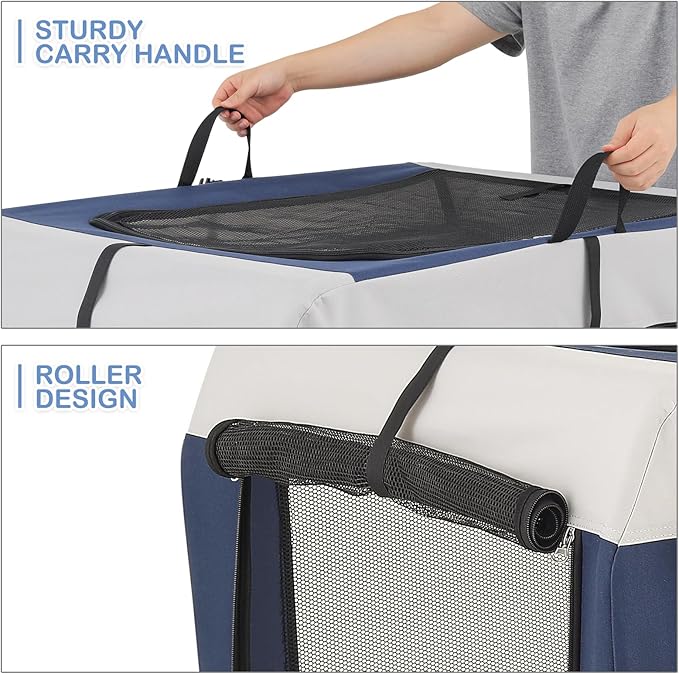 • Quick Setup & Space-Saving Storage: Easily set up this collapsible dog crate in seconds without tools, offering a stress-free setup; Ideal for compact storage, it folds down swiftly to fit under seats or tight spaces—perfect for home or travel