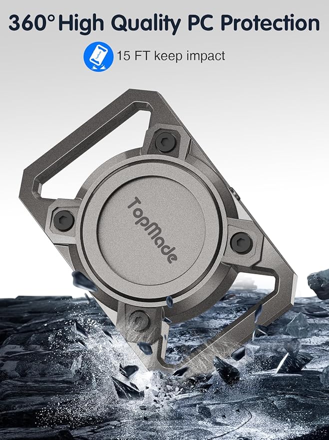 TopMade Smart Pet Tracker with Collar Holder, Cat Dog Tracker Compatible with Apple Find My, Anti-Lost Device Find Tag for Dogs, Cats, Pets, Luggage, Bag Straps, Not a GPS Tracker, Gunmetal