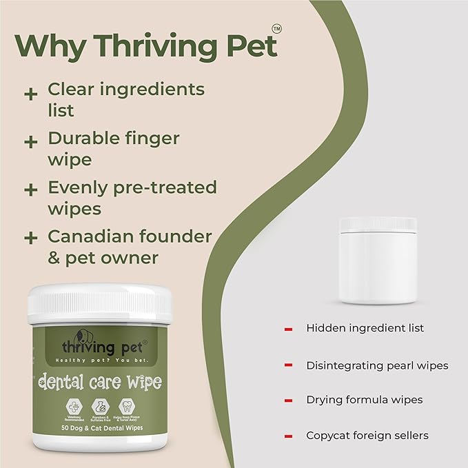 • THRIVING PET: Female Founded Brand and Dog Mama, Thriving Pet Was Founded From Frustration! Not Being Able to Find Closest to Natural, Limited-Ingredient-Every-Day Essential Pet Products on the Market. After Over a Year of Research, Education, Consulting and Back and Forth Negotiating for a Cleaner Formulation, Thriving Pet and Clean Grin Was Born! We Commit To Be Transparent With Our Ingredient List, Because We Get It. Your Fur Baby Is Not just a Pet, It's Your Child!