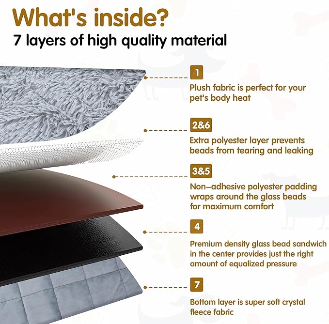 • 【Shaggy Dog Weighted Blanket】: The weighted blanket have 7 layers of blankets distribute the weight evenly into the shape of your pet's body. Soon after covering them, your dog will become calm and fall asleep under the weight of the blanket.