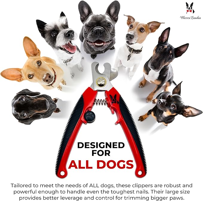 Warren London Dog Nail Clippers – Strong Enough for All Dog Sizes | Stainless Steel Blade | Ergonomic Grip | Nail Safety Guard | Professional Grooming Tool