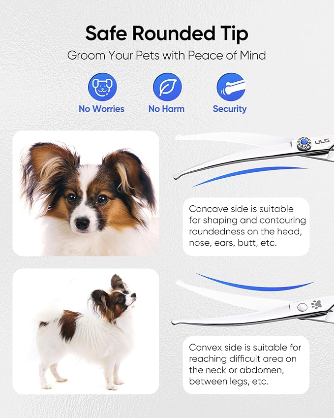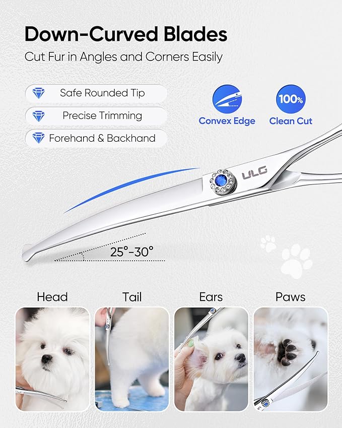 ULG Curved Thinner Dog Shears for Grooming - Ergonomic Dog Grooming Shears Sharp Curved Blender Dog Scissors for Grooming 440C Stainless Steel Grooming Scissors Professional Pet Shears