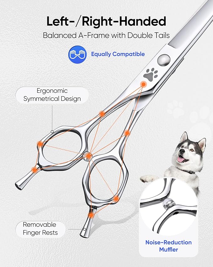 • Lightweight & Comfortable: Lightweight construction and ergonomic design make these curved scissors for dog grooming comfortable to use for all groomers, whether you’re a beginner or a seasoned professional. Effortless handling for extended grooming tasks.