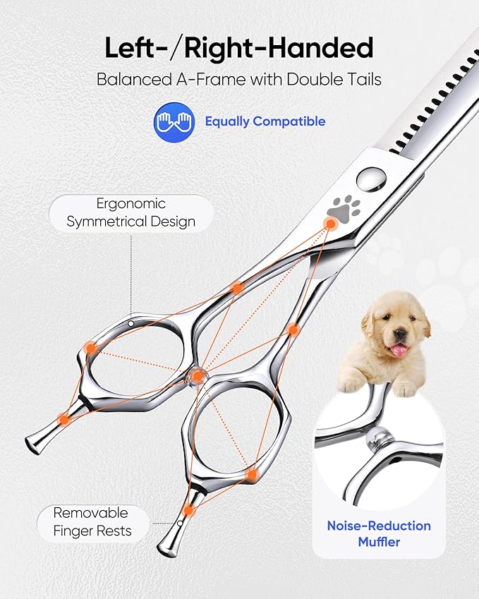 • Noise-Reduction Feature: Built with a silencer pad between two handles to ensure a quiet trimming session, helping to ease your pet’s anxiety and stress during grooming. The muffler also increases rebound for easier cutting.
