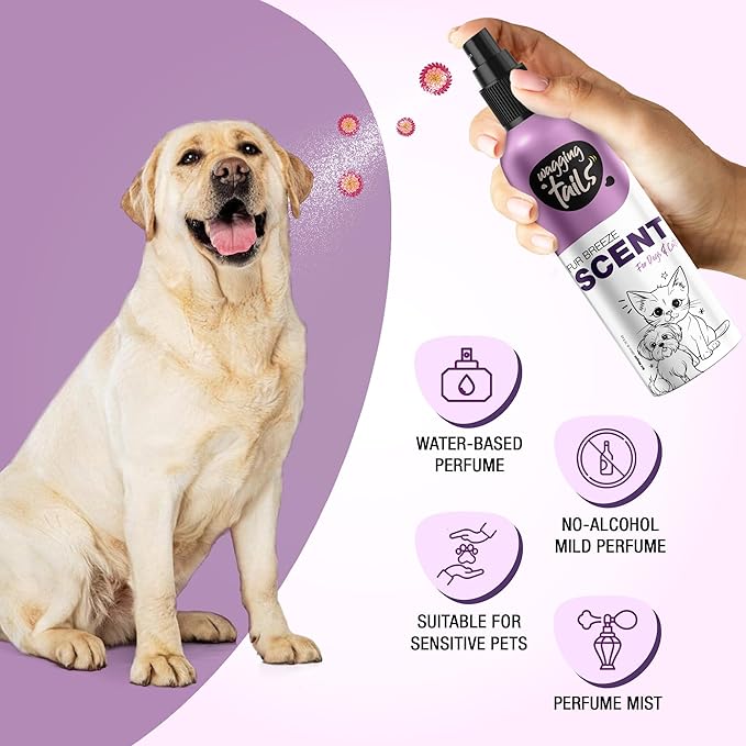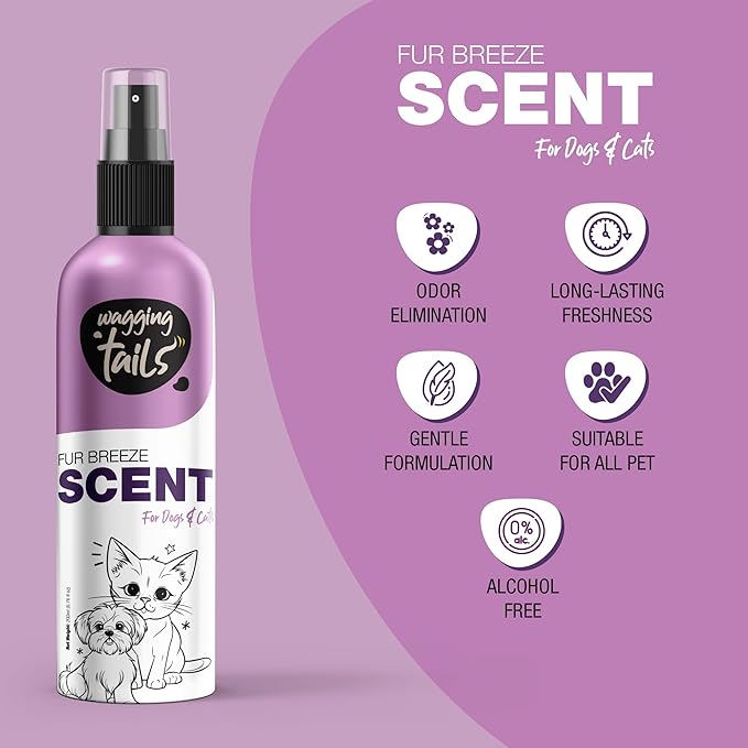 Wagging Tails 5-in-1 Fur Breeze Scent, 6.7 fl oz for Dogs & Cats | Alcohol-Free Pet Freshener | Long-Lasting Freshness & Odor Eliminator | Gentle Formulation for All Pets, Ensuring Daily Freshness