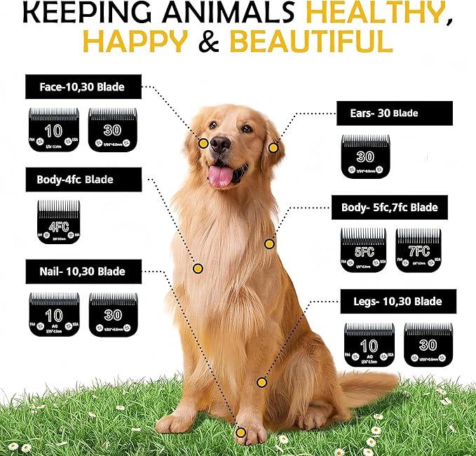 • 【Smooth & Precise Cuts】 – Delivers a consistent cut length—perfect for grooming various pet coat types, including dogs, cats, and other small animals. (Specific cut length will vary by blade size: 4F - ~3/8", 5F - ~1/4", 7F - ~1/8", #10 - ~1/16", #30 - ~1/50")
