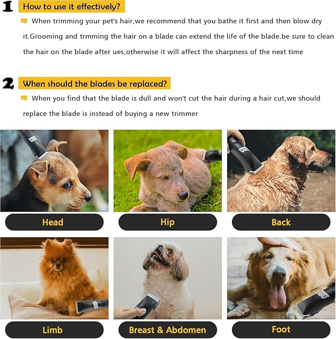 • 【Low Heat, High Safety】 – Engineered to run cooler with less friction, helping prevent skin irritation, pulling, or clipper burns—making grooming safe and comfortable for your beloved pets.