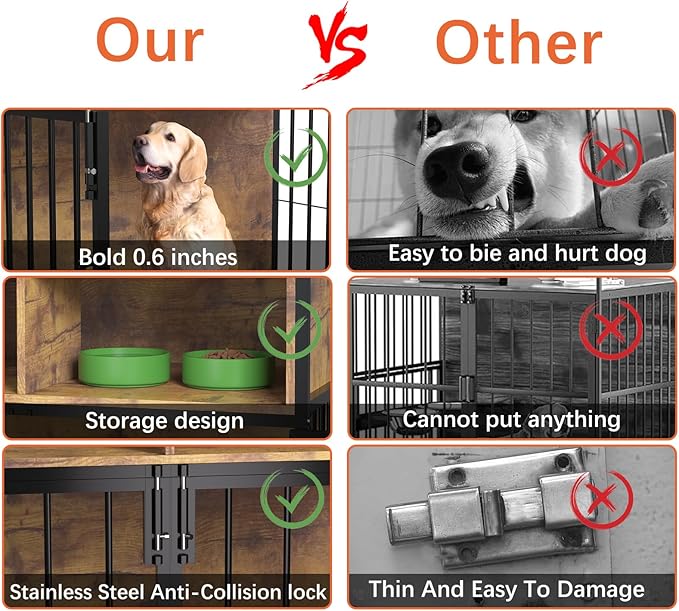 • 【Multi-PURPOSE & Extra Storage】:This is a nice piece of furniture that also serves as a dog crate. Appears as an elegant side table. Includes extra storage space for lots of pet supplies without cluttering up your house.