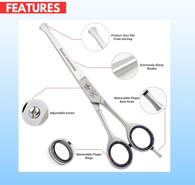 • ๐Ÿพ Pet Safe Design: Ball-tipped ends hair cutting scissors are perfect & safe pet gromming scissors to trimming around ears, nose, face, and paws.
