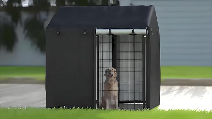 • Thoughtful Design: The dog kennel cover comes with 6 zippers that can be easily rolled up on each side and has buckles to secure it when rolled up. This design ensures air circulation, which not only keeps your dog comfortable outdoors, but also protects your dog's health by preventing odor buildup and stifling heat.