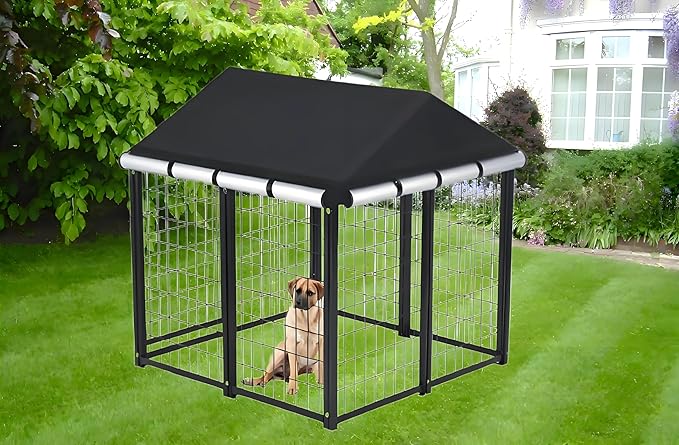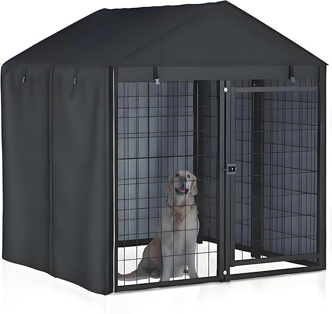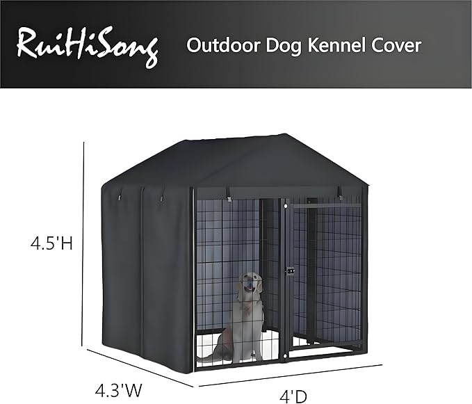 • Outdoor Kennel Cover : Measures 4'D4.3'X4.5'H. Please Note: Cover only. Please measure your kennel size before purchase to ensure proper fit.