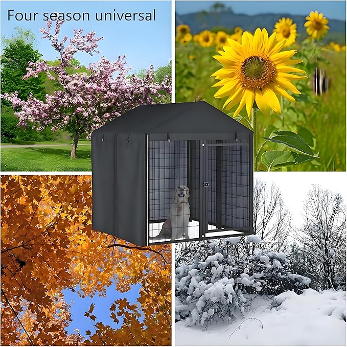 • Transparent Windows: Our large kennel covers have 4 transparent windows on the side, allowing natural light during the cold season and protection from cold winds.