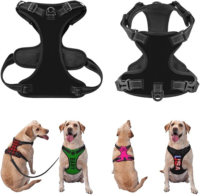 Custom Name Harness for Dog, Customized Pet Harnesses for Large Dogs, Personalized Dog Harness for Small Dog, Custom Pet Vest for Puppy, No Pull Dog Vests Personalization, BlankBlack, L