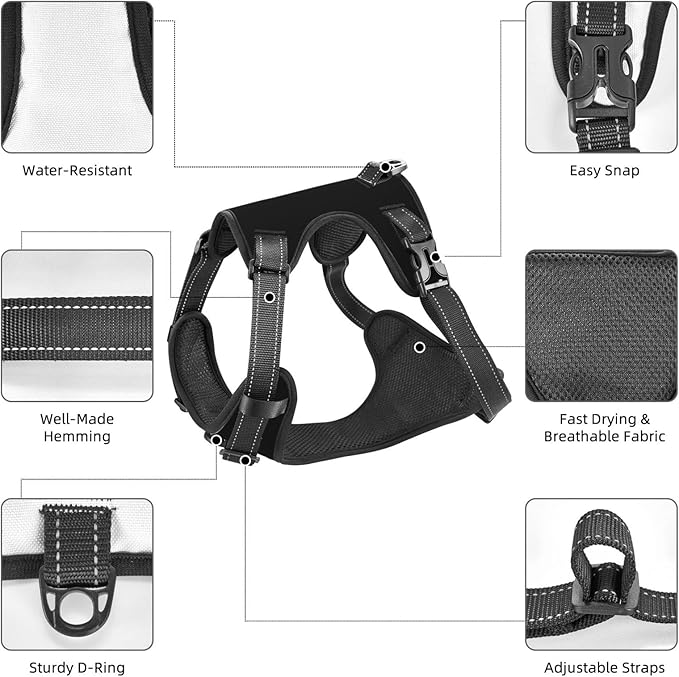 • *Quality Material: endurable oxford fabric, three-layer breathable mesh material for lining and reflective webbing rope, which ensure your beloved pet comfortable cool safety while walking or playing.