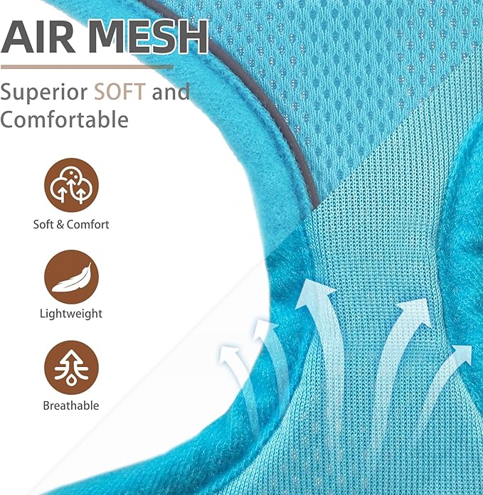 PUPTECK Soft Mesh Dog Harness and Leash Set Pet Puppy Cat Comfort Padded Vest No Pull Harnesses, Solid LightBlue, S