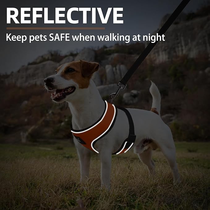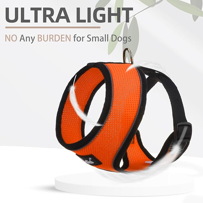 • QUALITY MATERIALS: Made of premium polyester materials, it's adopted with an air-mesh design, so it's very lightweight and breathable. The soft edge keeps the dog always comfortable, it's no pull and no choke. And sturdy webbings make sure the harness can be used for a long period. The metal D-ring will connect to the matching leash to keep the control by you