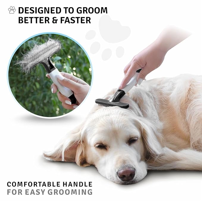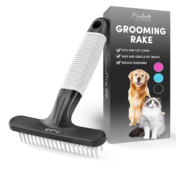 POODLIE Poodle Pet Dog Grooming Rake | Dematting Tool with Stainless Steel Shedding Comb for Pets | 2 Rows of Pins Gently Remove Loose or Tangled Hair from Undercoat (Black)