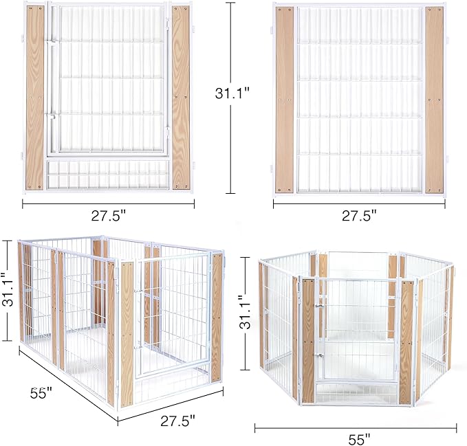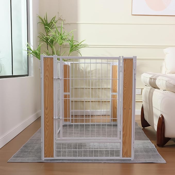 • 【Robust and Aesthetic Structure】Constructed from sturdy metal components, our puppy playpen is built to last, resisting damage from small pets while enhancing its longevity. The design is not only strong but also aesthetically pleasing, blending seamlessly with your home decor. Rounded edges safeguard your pets against scratches, ensuring their safety within the enclosure.