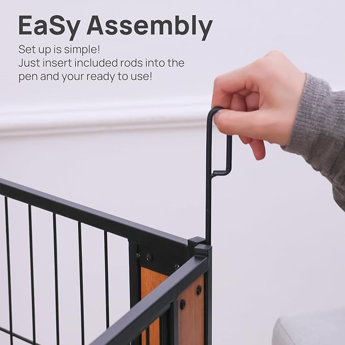• 【Robust and Aesthetic Structure】Constructed from sturdy metal components, our puppy playpen is built to last, resisting damage from small pets while enhancing its longevity. The design is not only strong but also aesthetically pleasing, blending seamlessly with your home decor. Rounded edges safeguard your pets against scratches, ensuring their safety within the enclosure.