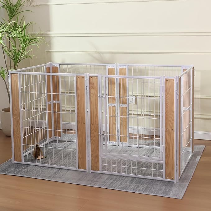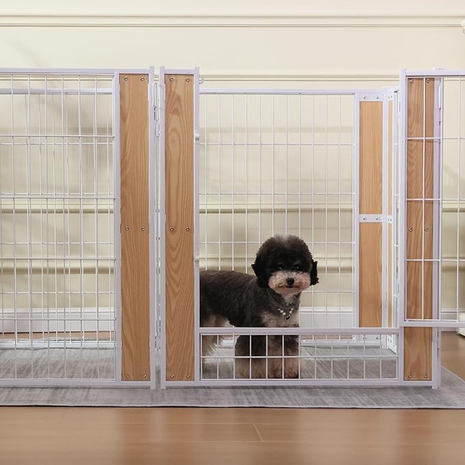 • 【Robust and Aesthetic Structure】Constructed from sturdy metal components, our puppy playpen is built to last, resisting damage from small pets while enhancing its longevity. The design is not only strong but also aesthetically pleasing, blending seamlessly with your home decor. Rounded edges safeguard your pets against scratches, ensuring their safety within the enclosure.