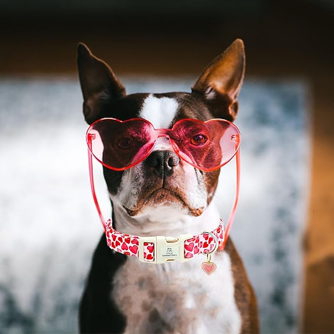 Lionheart glory Valentine's Day Collar, Red Hearts Dog Collar for Small Cute Dog Collars Spring Female Pet Gift Adjustable Heavy-Duty Holiday Dog Collar Plastic Buckle