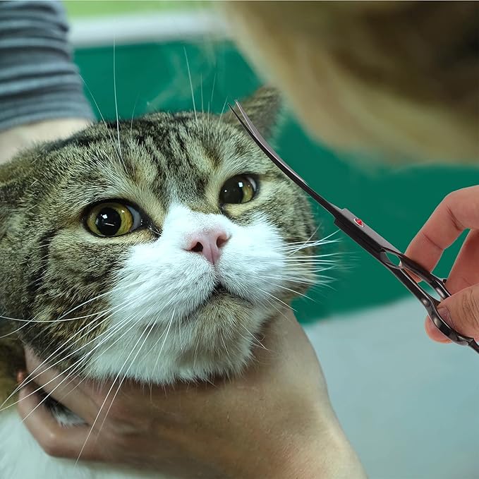 • Easy Trimming: With their curved design, these curved dog grooming scissors excel at enabling easy and precise trimming around delicate areas such as the eyes, eyebrows, face, hindquarters, and thighs. This feature makes them especially suitable for beginners, allowing for detailed grooming without compromising safety or quality.