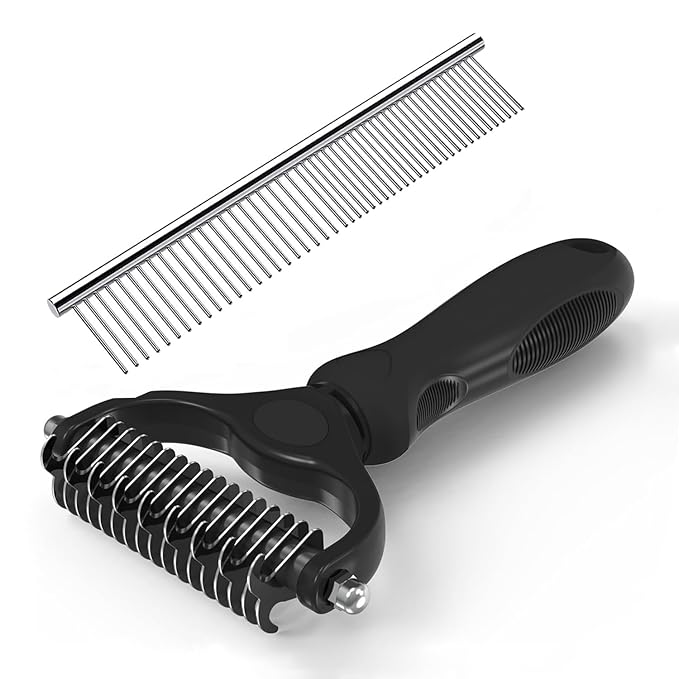 YINGFAN Pet Grooming Combo, Double-Sided Dematting Deshedding Undercoat Rake for Dogs and Cats, Dog Combs for Grooming Matting (Black)