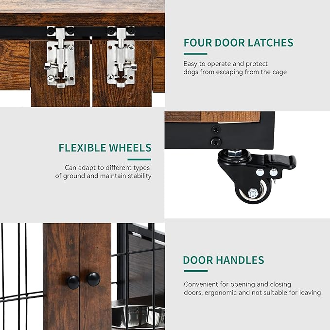 • Rotating Dual Dog Bowls: Whether your dog is inside or outside the dog crate furniture, feeding and watering is convenient with the rotating dog bowls; When your dog is resting, you can rotate the bowls outside the crate to prevent spills and maintain a clean interior