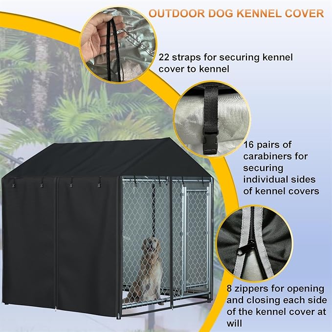 • 【Unique Design】We use 8 zippers and 16 pairs of buckles on the dog house cover, each side can be opened and closed freely, and you can change the direction at will Ventilation Lighting Shading